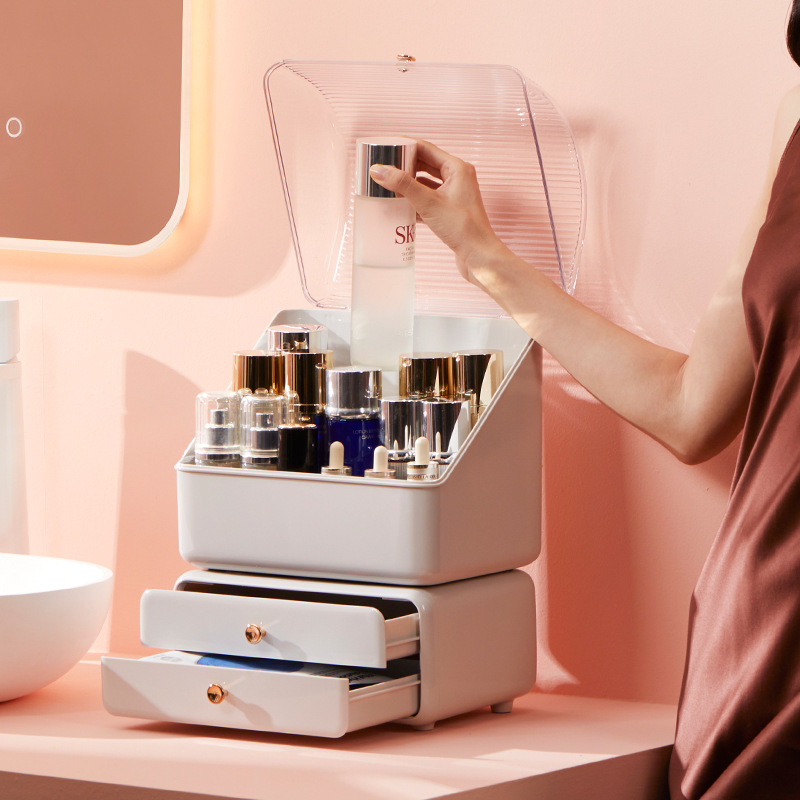 Cross-Border Cosmetics Storage Box Dust Screen Red Skin Care Products Desktop Storage Household Vanity Mask Storage Rack